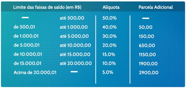 500, será liberado 50% do saldo, percentual que vai se reduzindo quanto maior